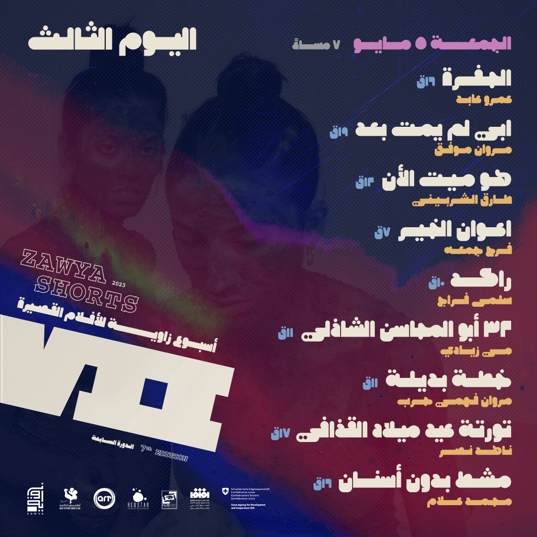Zawya Shorts VII May 3rd - 6th, 2023 Zawya is proud to be hosting Zawya Shorts VII in which it will screen short films made by Egyptian directors or directors residing in Egypt. All screenings will be followed by a Q&A with the directors, moderated by programmer and film critic Ahmed Refaat The selected short films will be competing for the following four prizes: ART - Best Film Award (15,000 EGP) Red Star - Best Director Award (10,000 EGP) Misr International Films - Jury Prize (10,000 EGP) Film Clinic - Audience Award (10,000 EGP)